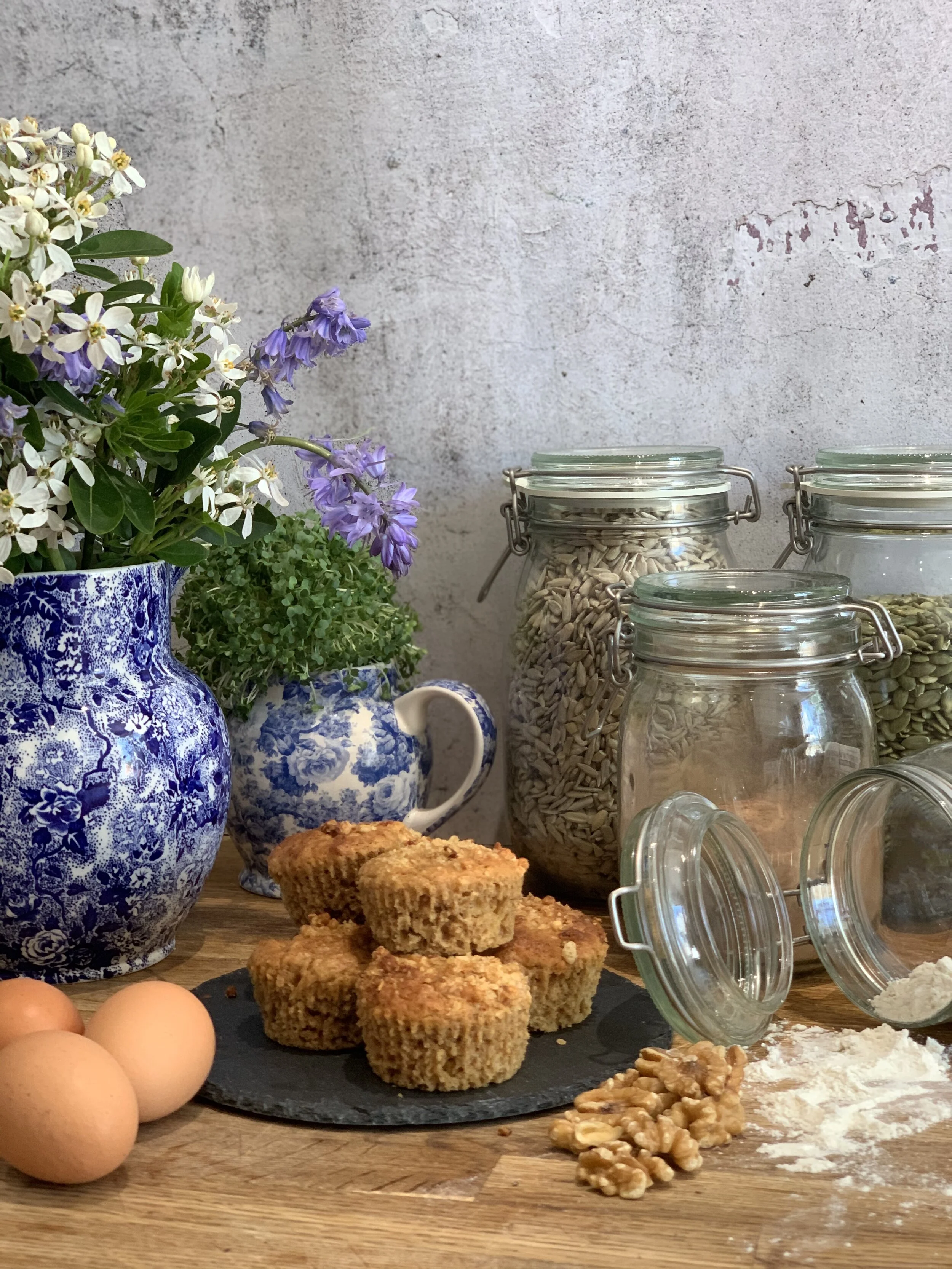 Bake for 25–30 minutes, or until a skewer inserted into the middle of the muffins comes out clean. Leave to cool for 5 minutes before serving warm or at room temperature.
