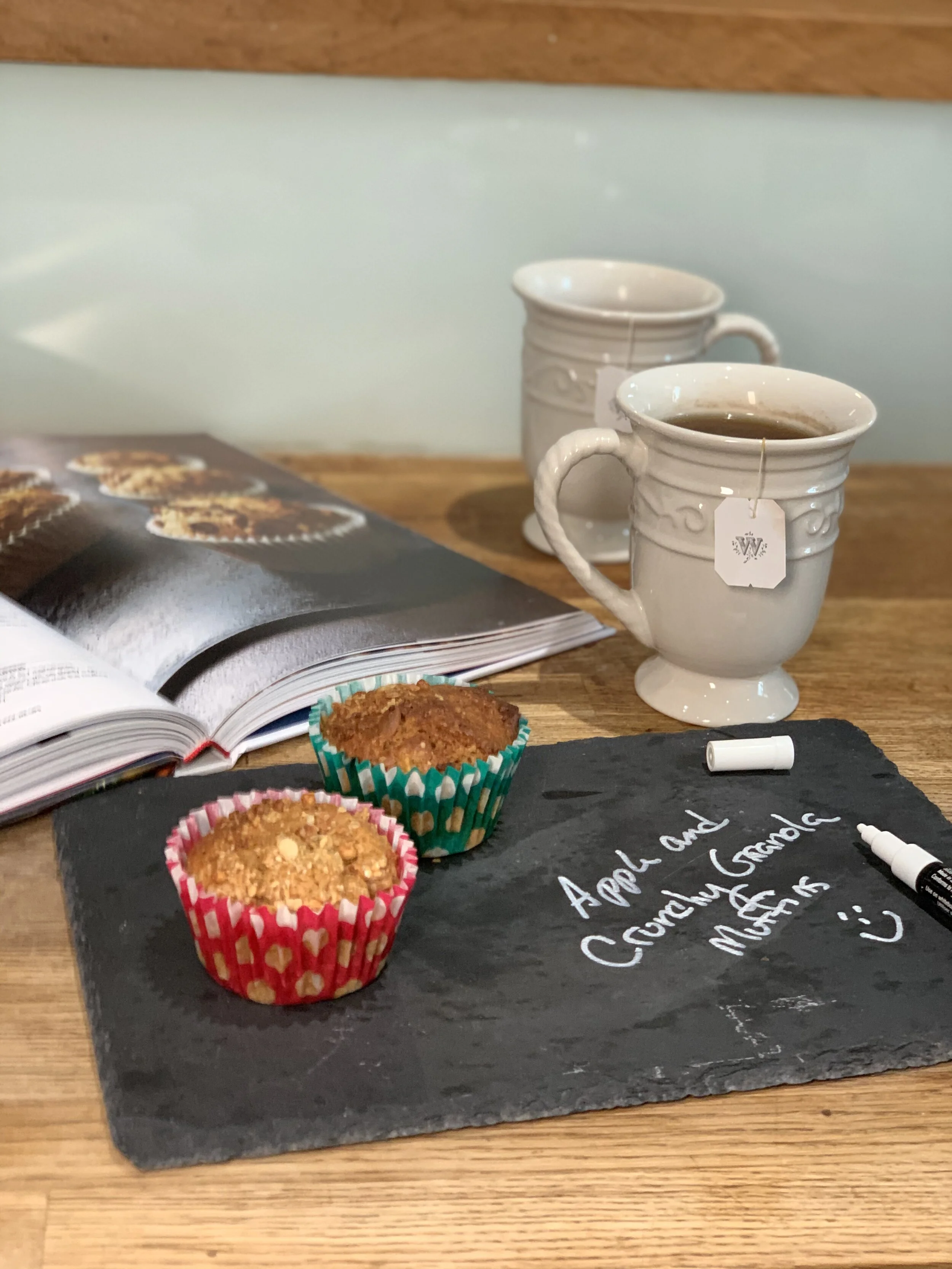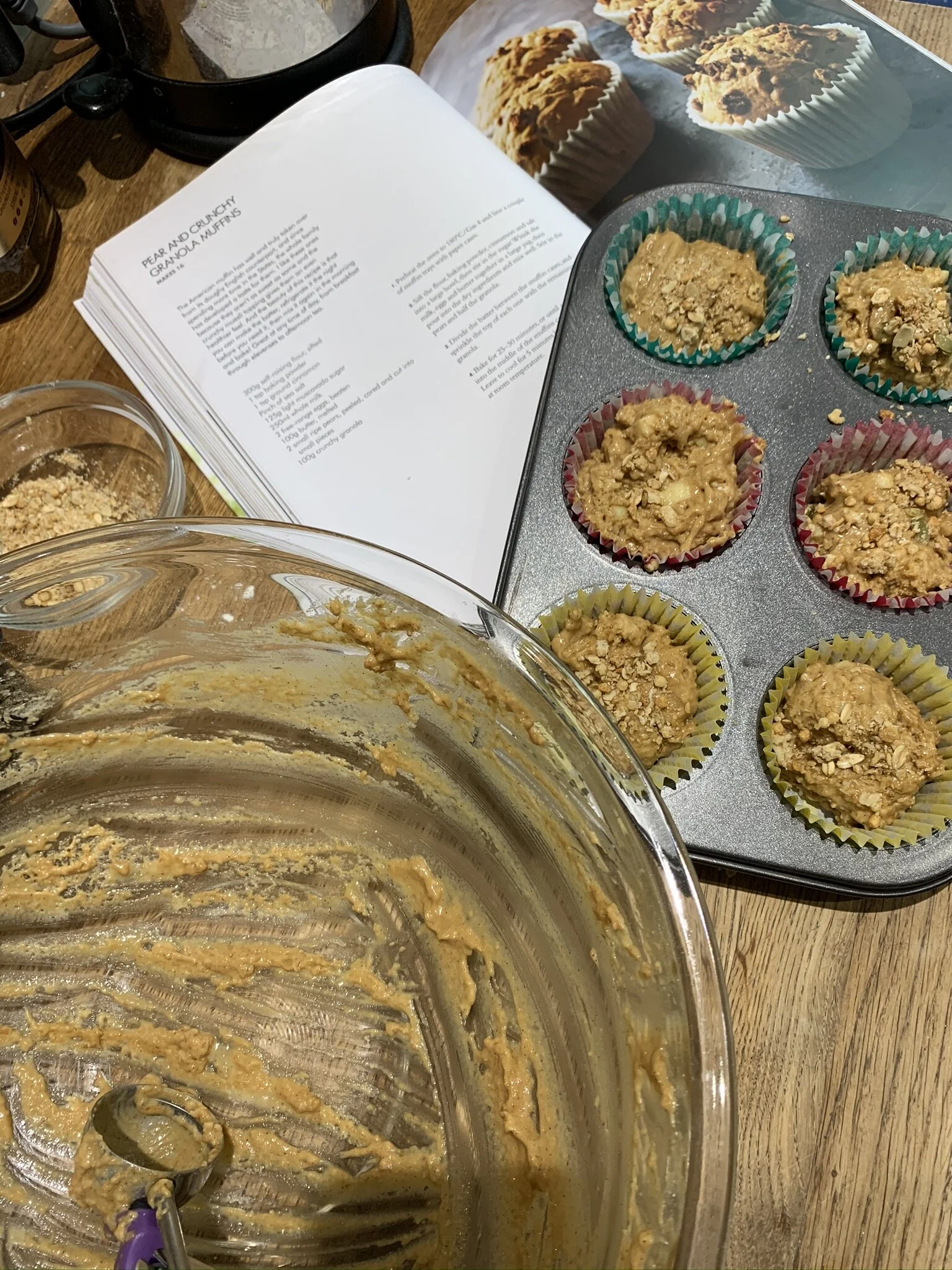 I am not a breakfast person, I’ll eat it, but there is much I don’t like so my choices are very limited. The other day I was thumbing through my latest cookbook purchase, Gordon Ramsay’s Ultimate Home Cooking, and found a recipe for pear and granola muffins. I had some pears from the last fruit and veg box I had delivered so I was excited to use them.
