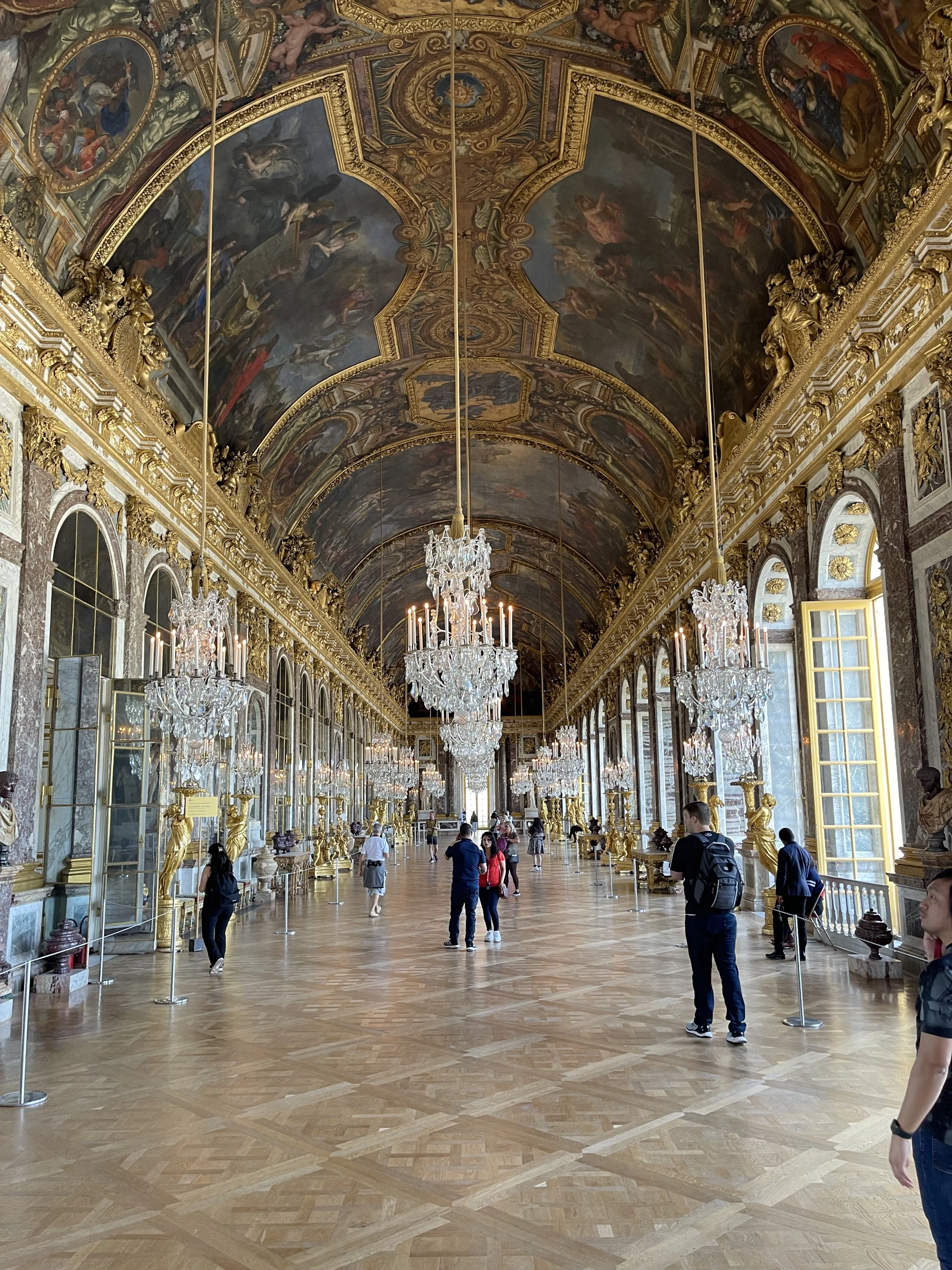 Not wanting to miss an opportunity to show the world the wonders of French craftmanship, the hall of mirrors was lined with mirrors made on French soil - rather revolutionary at the time since mirrors were shipped in from Italy at a great cost, no less.